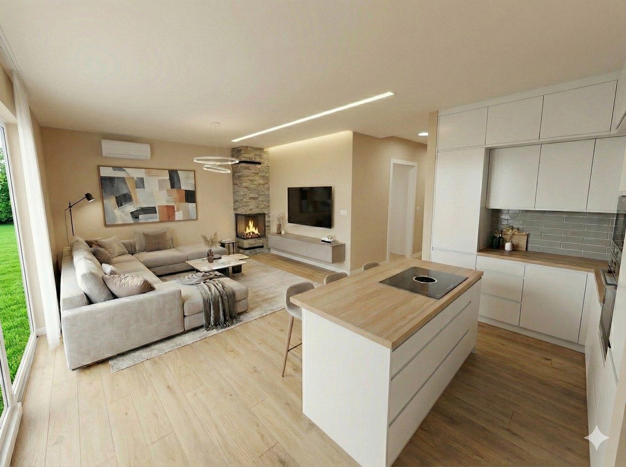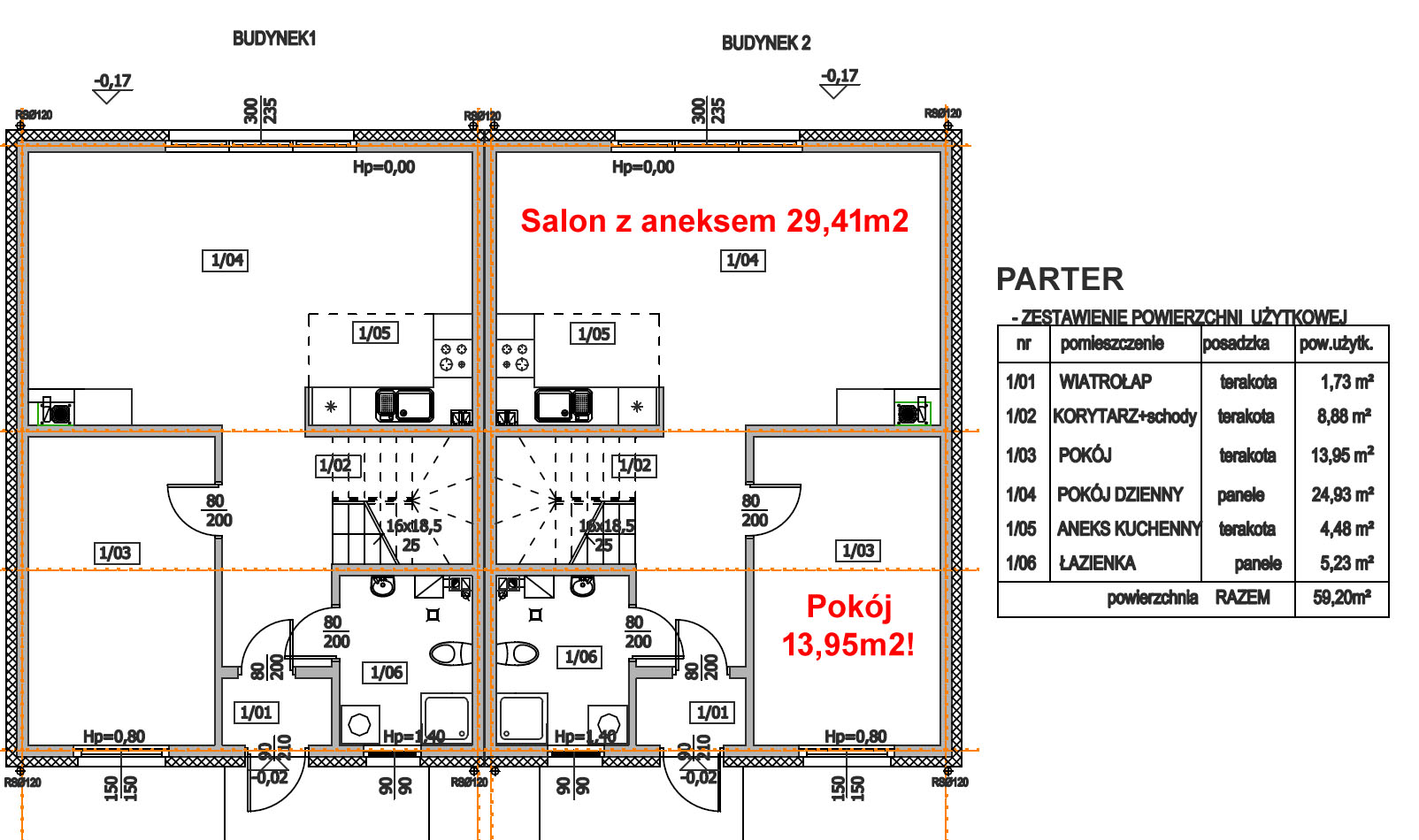 - wykończenie parteru – ściany działowe 12cm, posadzki, tynki, rozprowadzone instalacje