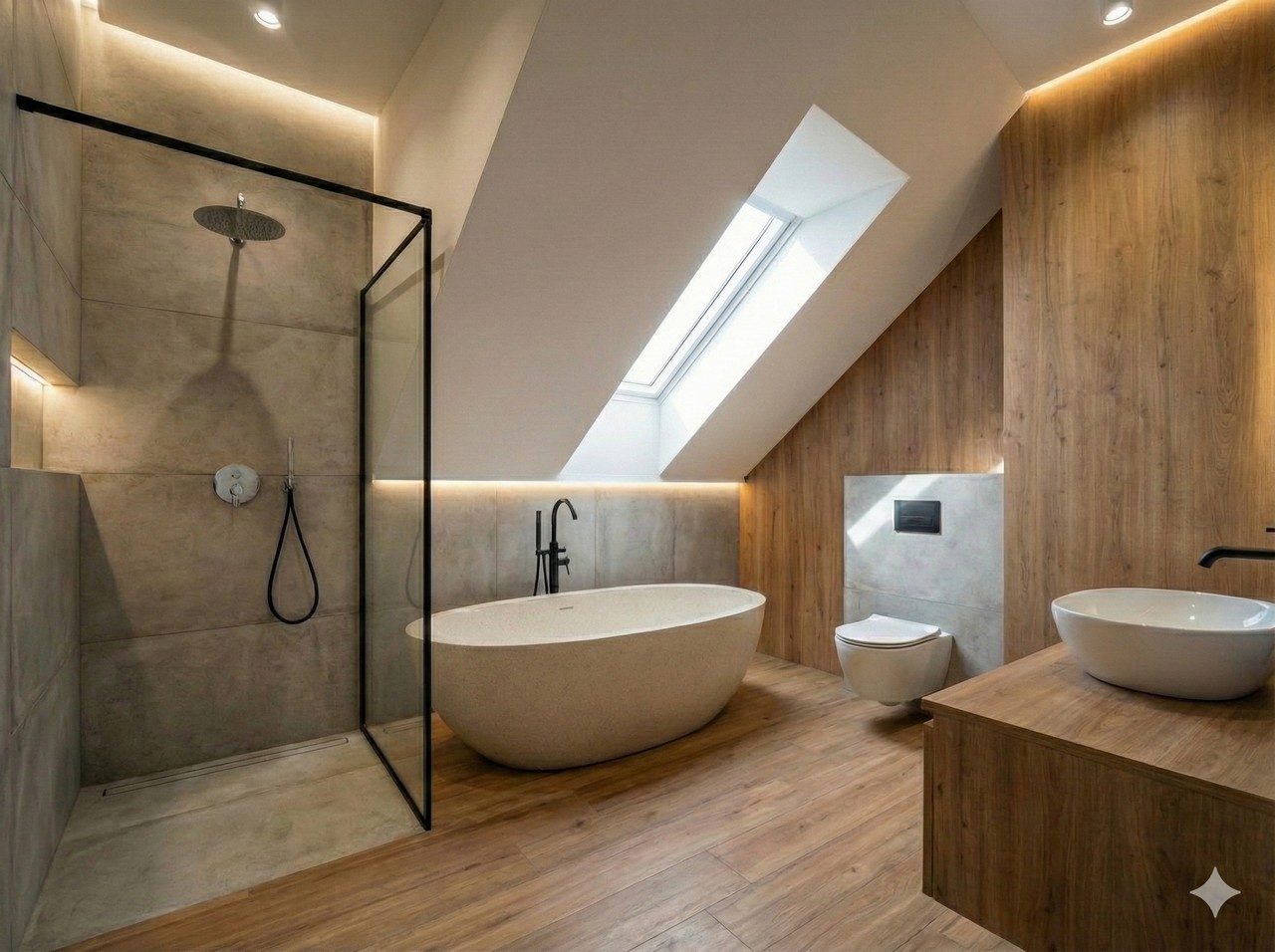 - wykończenie poddasza – ściany działowe 12cm, ocieplenie stropu pianą PUR 25cm, regipsy, tynki gipsowe maszynowe, posadzki